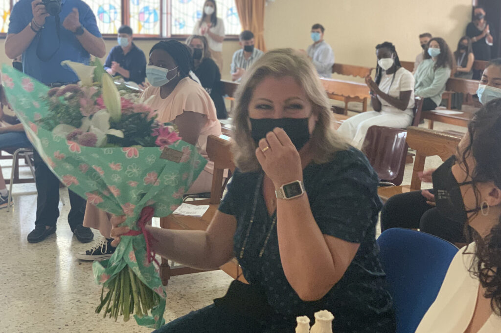 La fiesta de María Auxiliadora es uno de los días más grandes para los que nos sentimos salesianos. Y qué mejor día para rendirle un homenaje a una gran maestra con gran corazón salesiano, como es la señorita Mari Carmen Guerrero, que tras más de 40 años de servicio y entrega, se jubila. Querida por todos los niños y niñas además de apreciada por todos los que pertenecemos a esta casa salesiana de Utrera, Mari Carmen es un ejemplo de profesionalidad, un espejo donde mirarnos el profesorado que hemos estado a su lado estos años, ejemplo de salesianidad, ha sabido transmitir a los jóvenes el carisma que Don Bosco nos lego a los educadores salesianos y salesianas. Gracias por todos estos años de trabajo, esfuerzo y sobre todo gracias por todos estos años en los que nos hemos sentido acompañado por tu persona. Formas ya parte de la historia de esta casa, de tu casa, de tu cole.