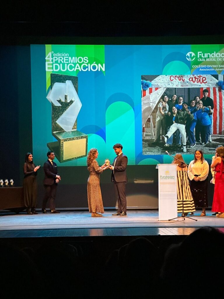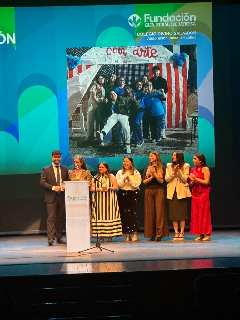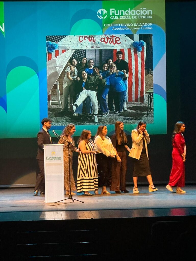 Entre los proyectos galardonados se encontraba nuestra Asociación Juvenil Huellas, un grupo profundamente vinculado a nuestro colegio “El Divino Salvador”, cuya labor diaria refleja valores que sentimos muy nuestros: acompañamiento, cercanía, inclusión, compromiso social y esperanza en los jóvenes.