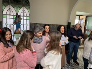 Esta semana hemos tenido el inmenso placer de recibir la visita de nuestra Inspectora Provincial de las FMA Sor Chari García en nuestra casa de Utrera. Nos ha estado acompañando en los buenos días, donde nuestros alumnos y alumnas han escuchado con gran interés y devoción el mensaje que nos dejaba en nuestros corazones “Pongamos cada uno un granito de arena y seguro que las cosas cambian”. Hemos notado su calidez y cercanía tanto compartiendo ratos de juegos en el patio con los jóvenes como acompañando a los profesores y compartiendo con ellos algunas palabras y reflexiones, entre las que destacamos el vocablo “CUIDADANIA”, la importancia de cuidar el vínculo con las personas, acompañándolas y favoreciendo las relaciones socio-afectivas. Queremos dar las gracias a Sor Chari por compartir estos días con la comunidad salesiana de Utrera, por tenernos presente en su día a día y sobre todo por compartir su experiencia con nosotros.